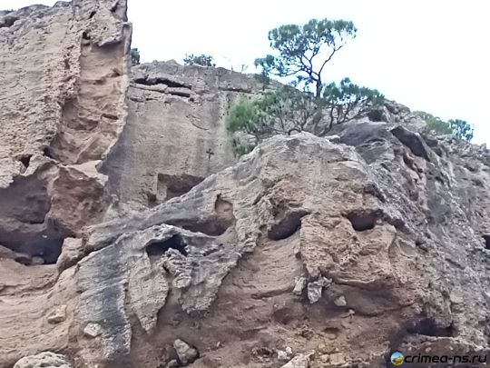- Расположен у подножия мыса, добраться можно через можжевеловую рощу и ущелье или на лодке.