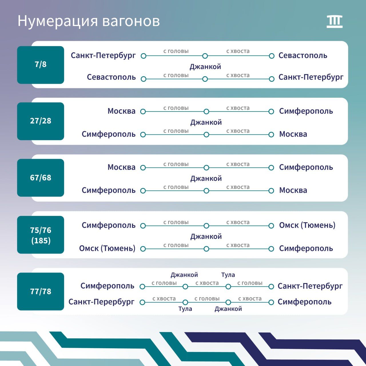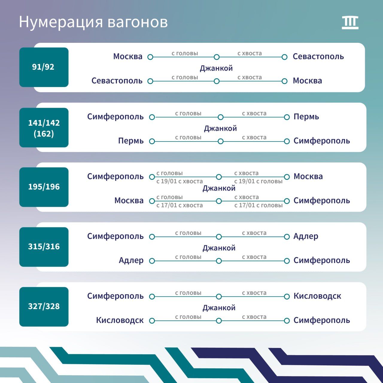 Как меняется нумерация вагонов в поездах крымского направления на разных маршрутах на сезон осень-зима 2025/2026 года.